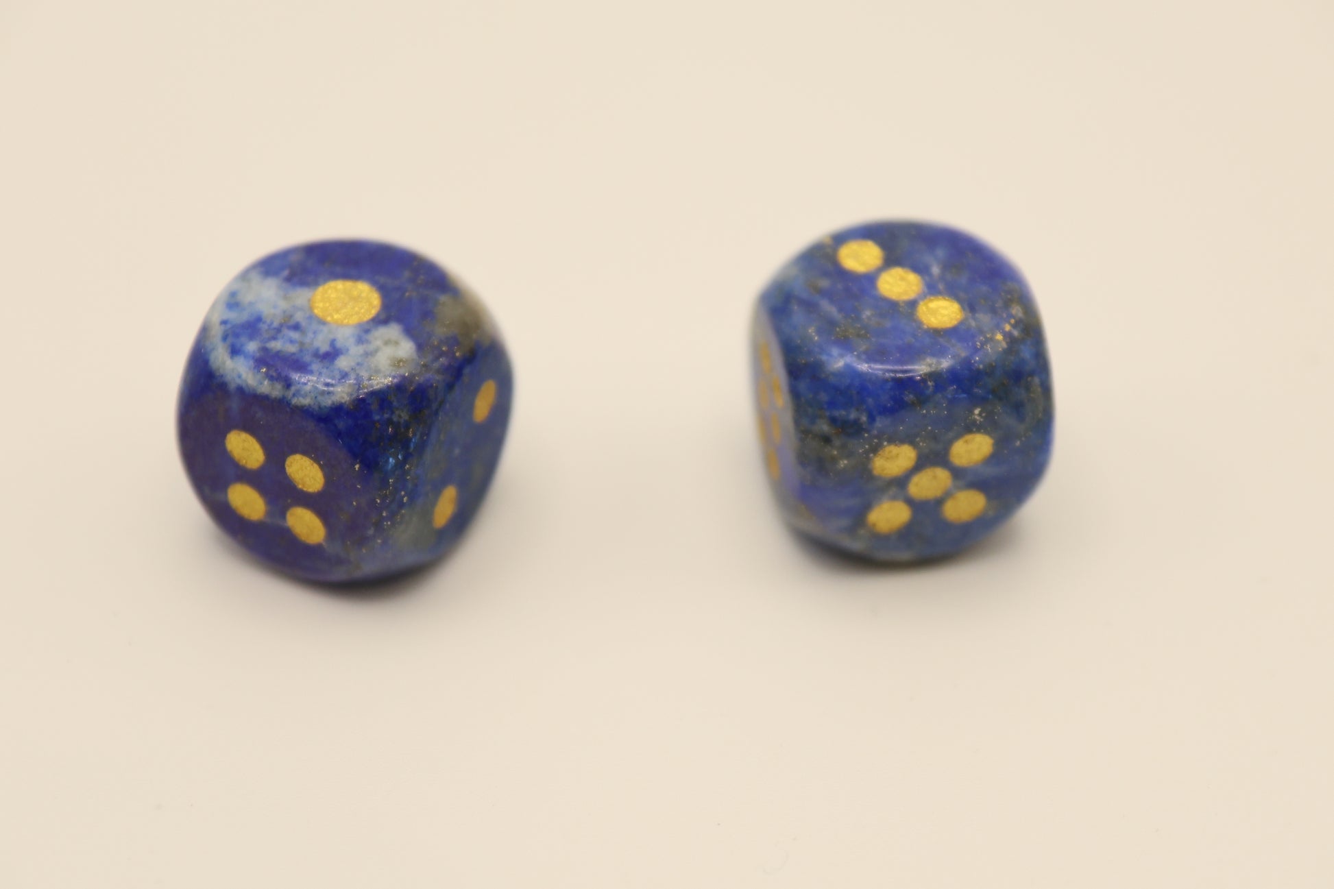 Roll with style! Upgrade your game night with the timeless elegance of our Lapis Lazuli Bougie Dice! Crafted from natural semi-precious stone, Lapis lazuli is an ancient deep-blue metamorphic rock, prized for thousands of years in jewelry, carvings and as a pigment. It is often called a "stone of truth and friendship," believed to foster wisdom, inner peace, and intellectual ability. It is associated with the third eye chakra, believed to aid in spiritual growth and self-awareness.