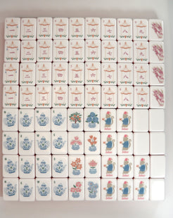 Inspired by the elegance of our classic design, this timelessly beautiful set of engraved and painted American Mahjong tiles features a distinctive macaron-style profile, with four stacked layers of complementary pinks and crisp white. Stunning from every angle, each tile is adorned with elegant yet whimsical artwork, bringing a playful charm to your game.