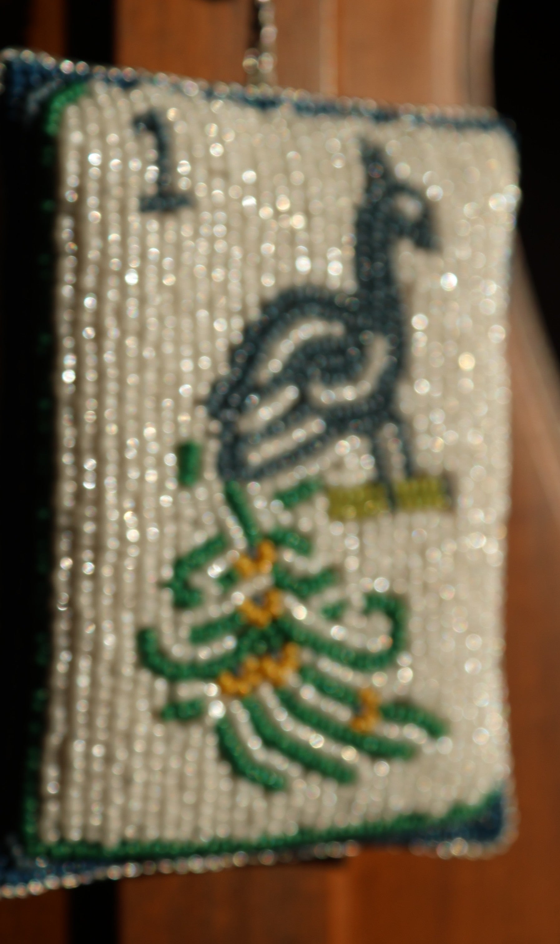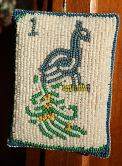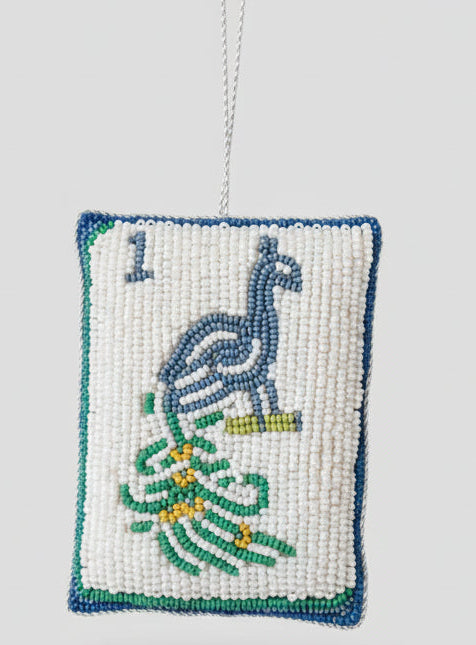 A celebration of craftsmanship and whimsy, this hand-beaded treasure showcases the iconic One Bamboo tile in radiant detail. Flip it over to reveal a festive “Merry Mahjong”—a wink to game nights and holiday cheer.