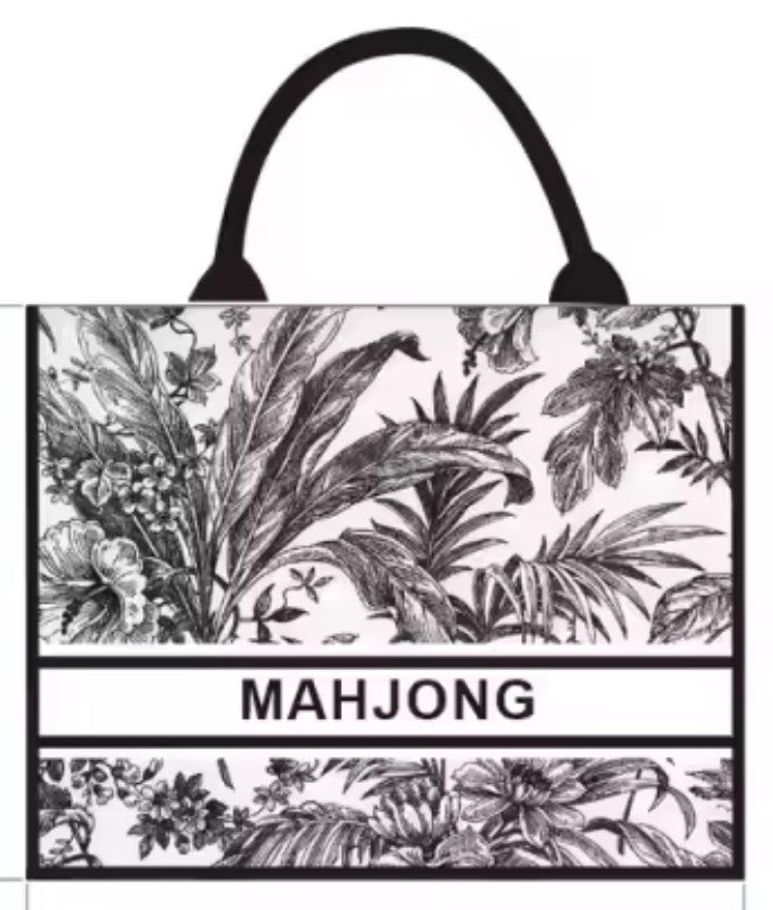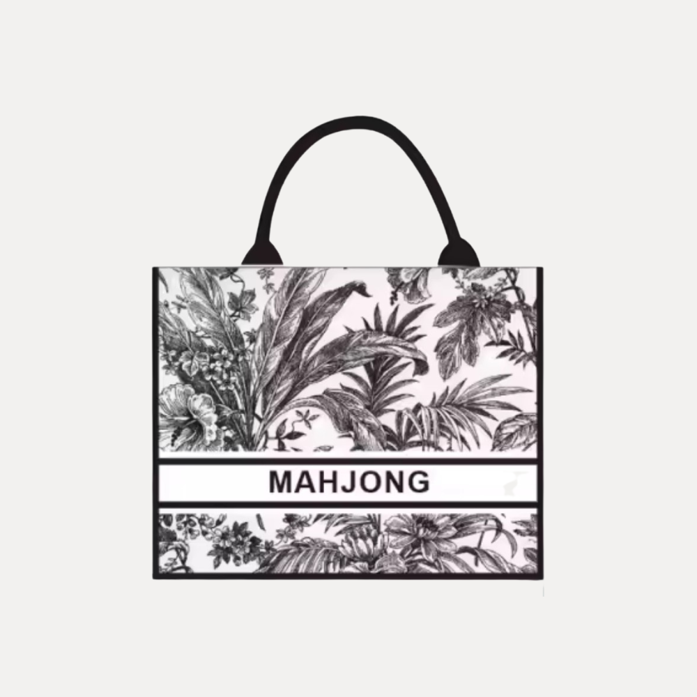 Carry your mahjong set in style with our Mahjong Tote Bag. This elegant bag features a sophisticated print in black and white, perfectly accented by bold letters that declare your love for the game. It's the perfect mix of playful style and chic design, making it the ideal accessory for every mahjong night. Don't forget to grab one of our coordinating tassels, make a statement and make it yours.