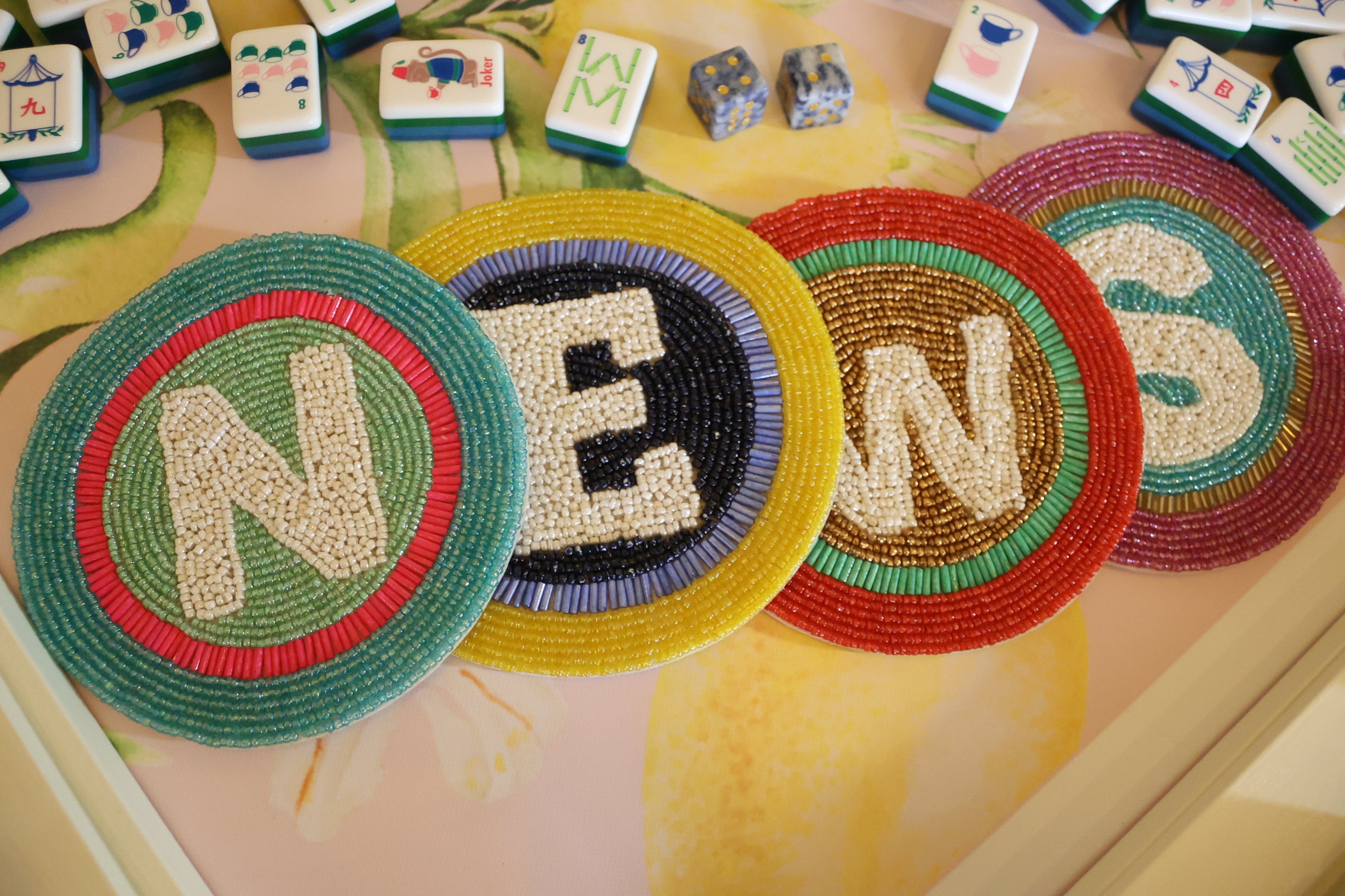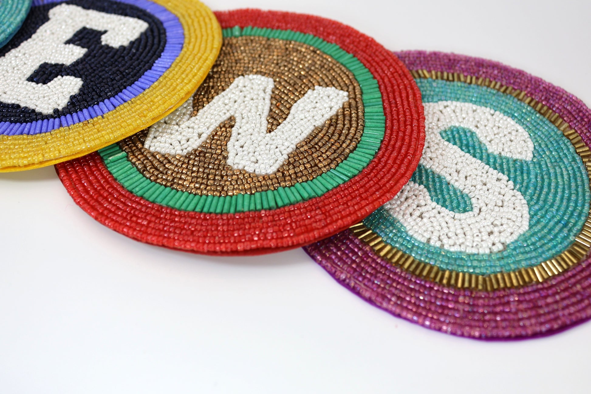 Add a touch of elegance and playful charm to your game night with our Hand Beaded Coaster Set. Designed to perfectly coordinate with all of our Mahjong mats.